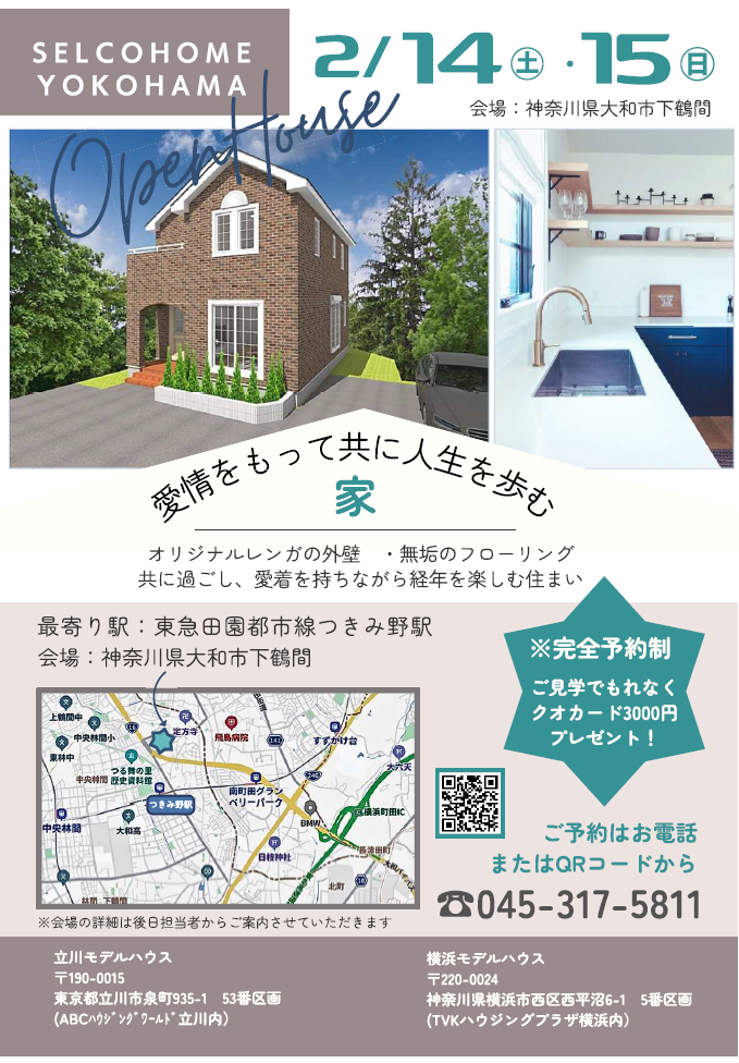 2月14日(土)~15日(日)の2日間限定で、大和市にて完成現場見学会を開催します。